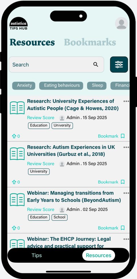 The Autistica Tips Hub is a free app to help you find reliable autism tips and evidence-based resources. Created by and for the autistic community, it offers practical tips and high-quality resources to make everyday life easier.