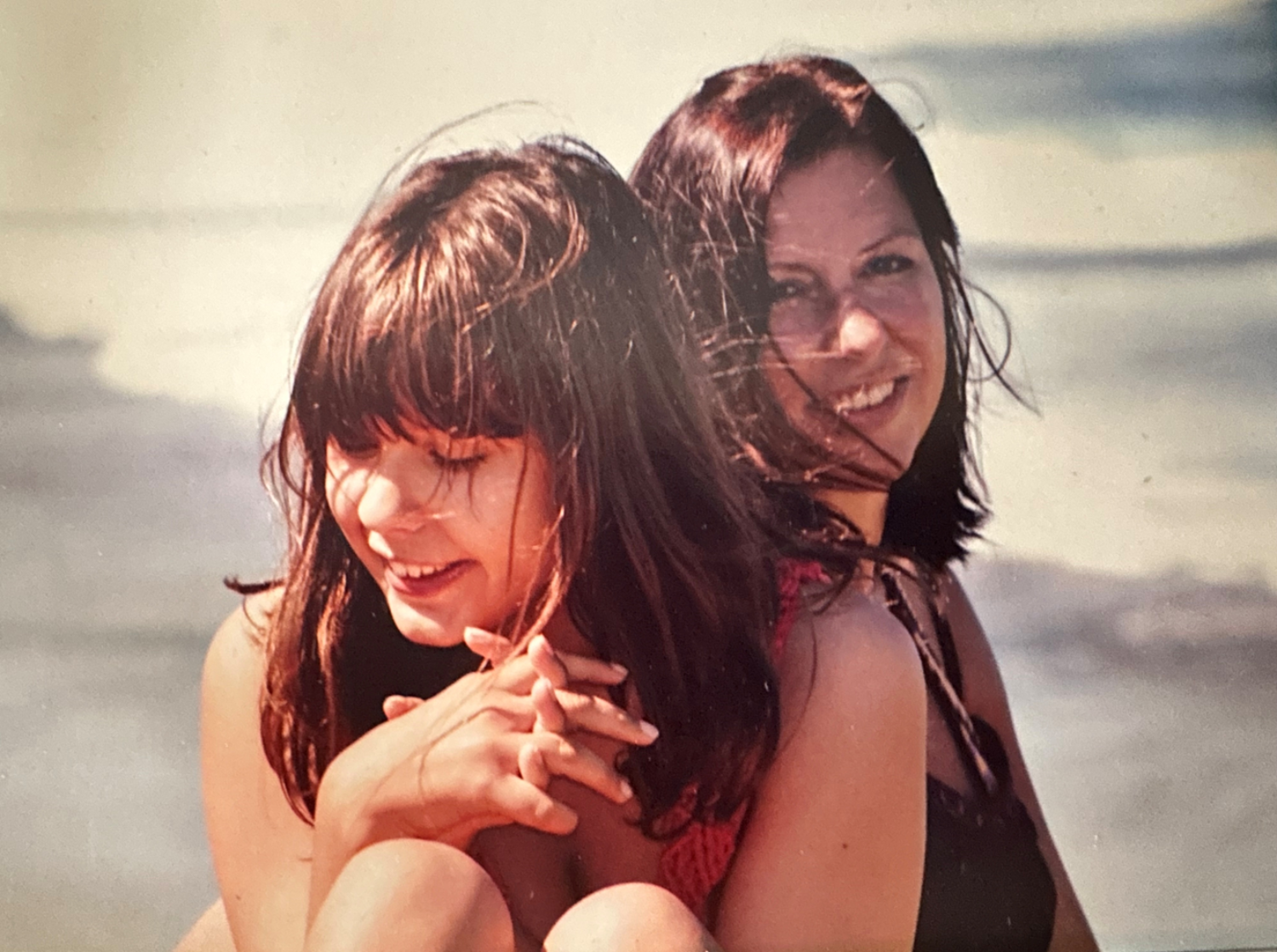 Ellie as a child with Gill at the beach