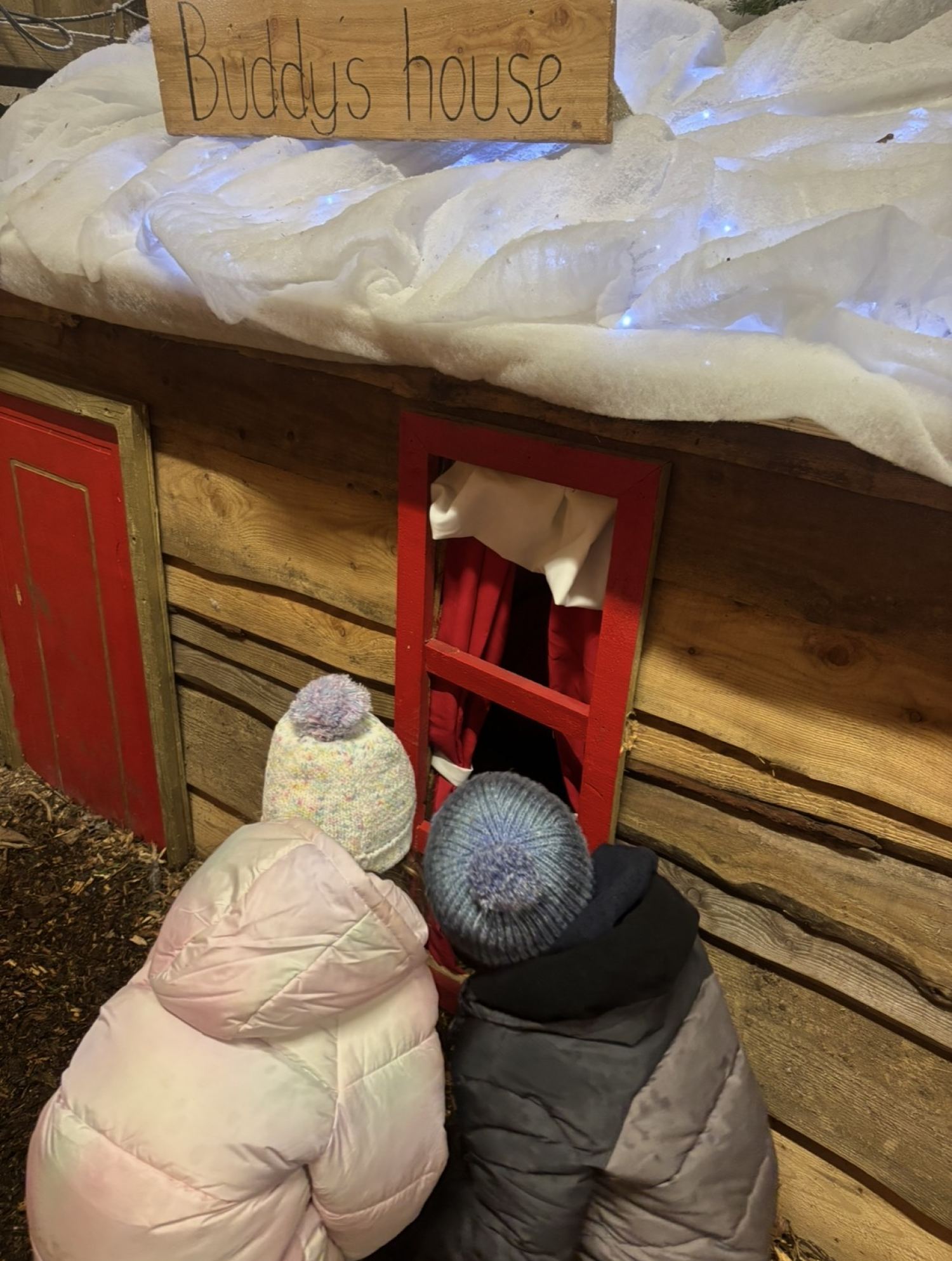 George and Harriet's children peek inside a Christmas grotto.